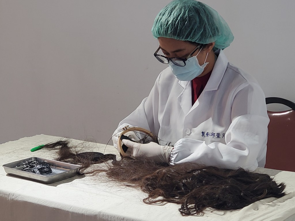 Chiu Hsuan-Chin’s relatives and friends lost their hair due to chemotherapy for cancer treatment. She has also accompanied terminally ill cancer patients with artistic creation in hospice wards. After losing loved ones to illness, she came to understand that much love and care must be expressed while people are still alive to be meaningful.